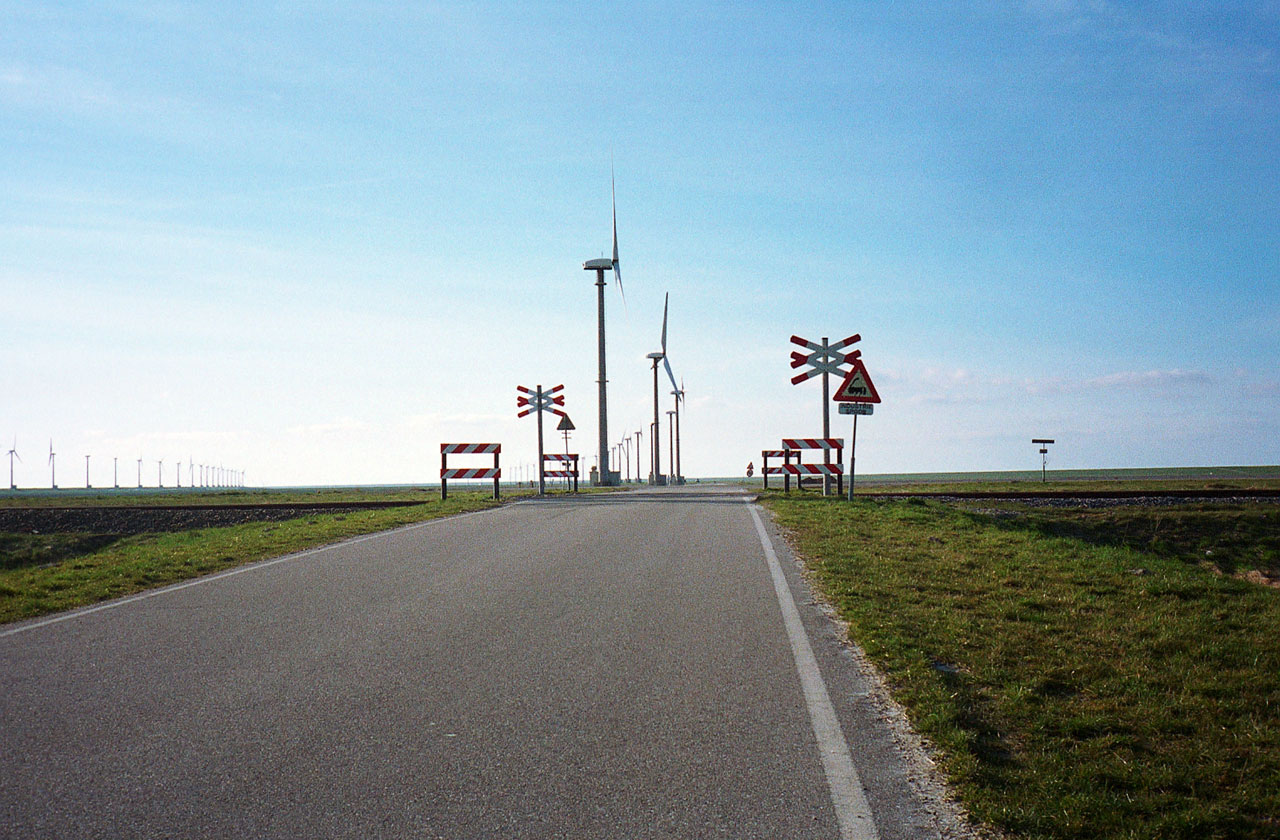 Fünf Kilometer Zivilisation: fünf Kilometer Deichland in Nordholland, fünf Kilometer gestaltete Landschaft.