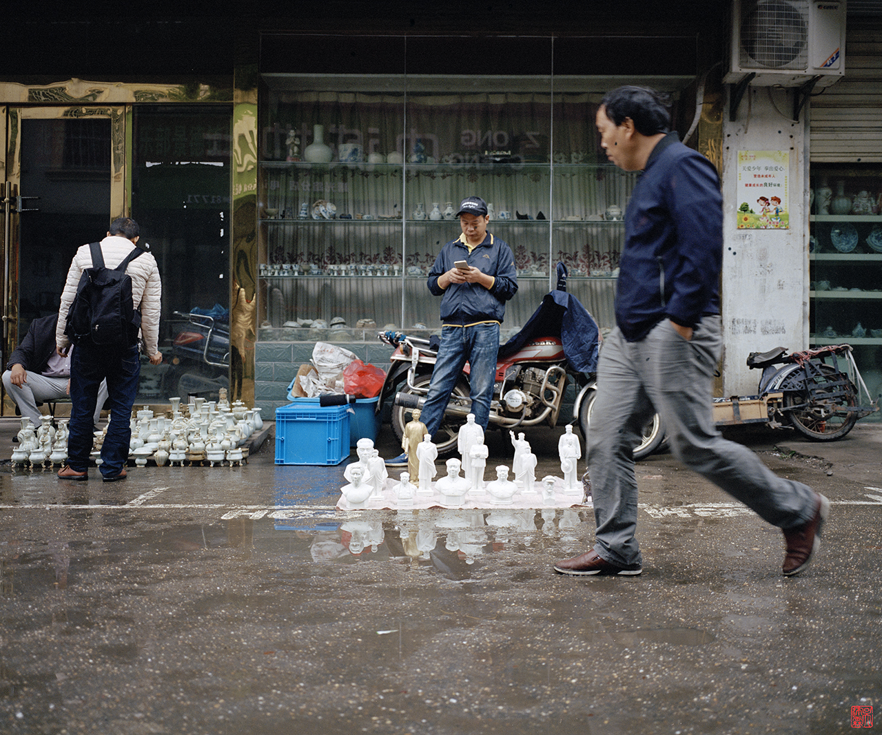 In den zwei jeweils vierwöchigen Aufenthalten im März und August 2017 streifte ich durch die Geburts- und Hauptstadt des Porzellans, die seit der Songdynastie um 960 n. Chr. die industrielle Fertigung von Porzellanwaren perfektioniert hat, und versuchte die Stimmung dieser Stadt einzufangen, welche sich durch eine emsige Betriebsamkeit und fröhliche Lebendigkeit auszeichnet.