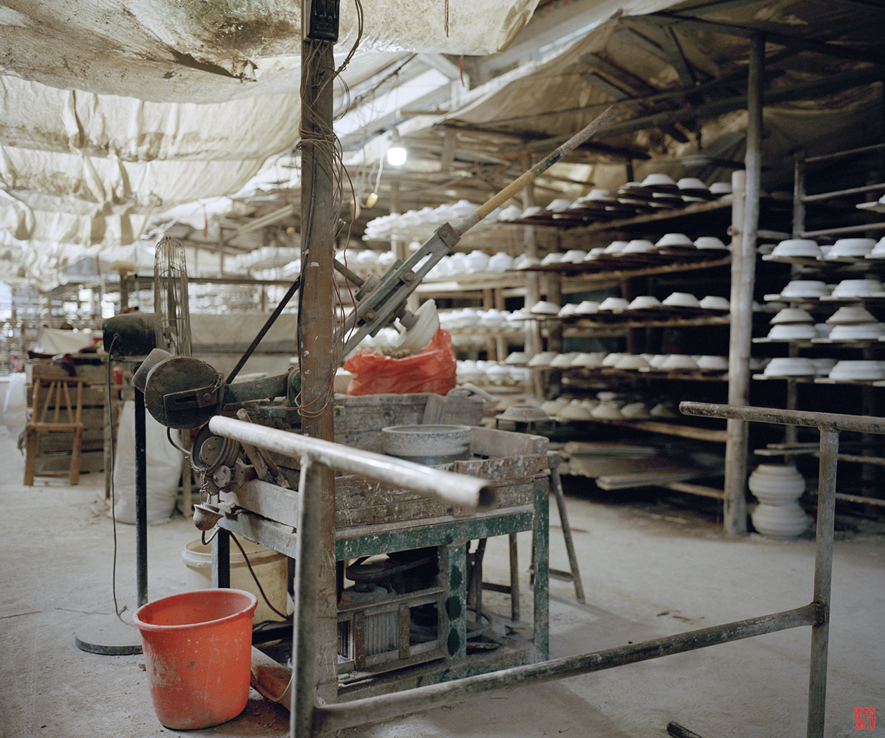 Das Areal erstreckt sich über knapp 100.000 qm und ist ein Gewirr aus kleinen Gassen, Hinterhofwerkstätten und privaten wie öffentlichen Brennöfen.  Die Fabrik selbst ist verschwunden, wurde 1986 unter Deng Xiaoping privatisiert und beherbergt auf ihrem Gelände heute eine unglaubliche Dichte an Porzellanhandwerks-Ateliers: Formenmacher, Bildhauer, Töpfer, Formengießer, Porzellanmaler, Vergolder, etc..
