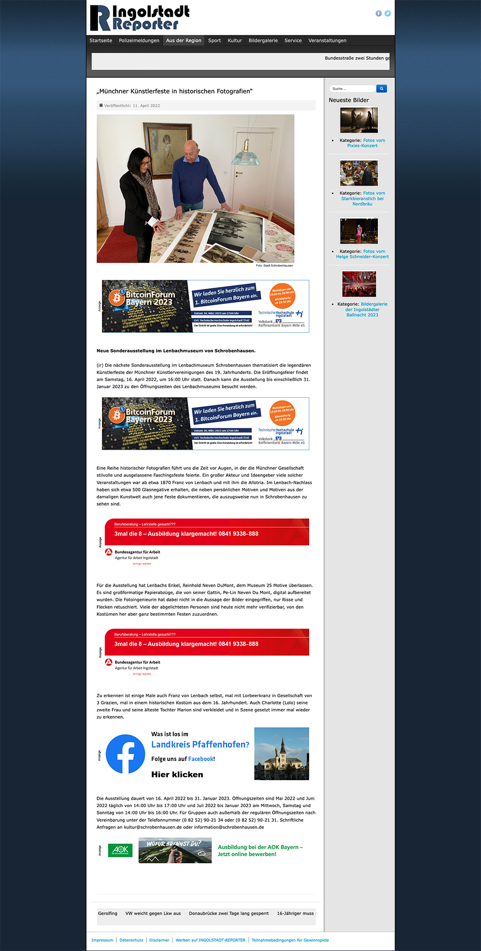 Beitrag auf ingolstadt-reporter.de zur Ausstellung im Lenbach Museum Schrobenhausen im April 2022.