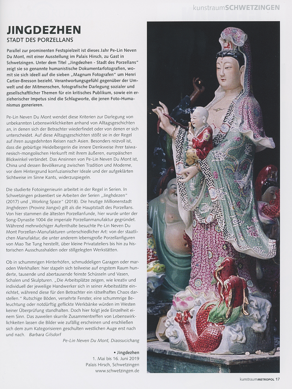 Beitrag in ‚kunstraum Metropol – Das Kulturmagazin der Metropolregion Rhein-Neckar‘ zur Ausstellung im Palais Hirsch in Schwetzingen, Ausgabe Q2 2019, Seite 17.